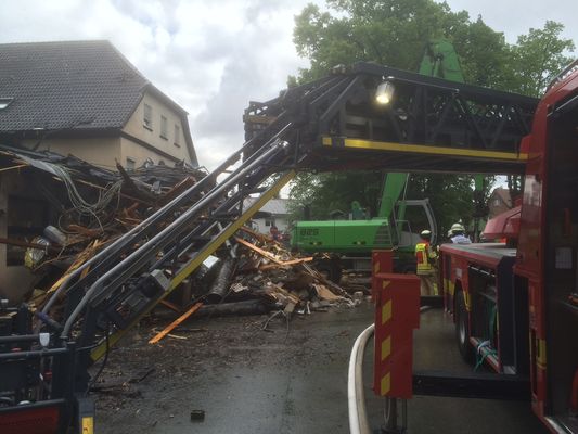 Die Bewohner sind aus dem Wohnhaus evakuiert worden. Verletzt wurde niemand. Allerdings sind in dem Brandrauch nitrose Gase gemessen worden. Daher wird die Bevölkerung in Lipperode aktuell gewarnt Fenster und Türen geschlossen zu halten und sich im Gebäude aufzuhalten. Der Verkehr auf der angrenzenden B 55 ist nicht betroffen.