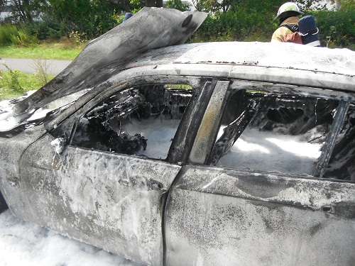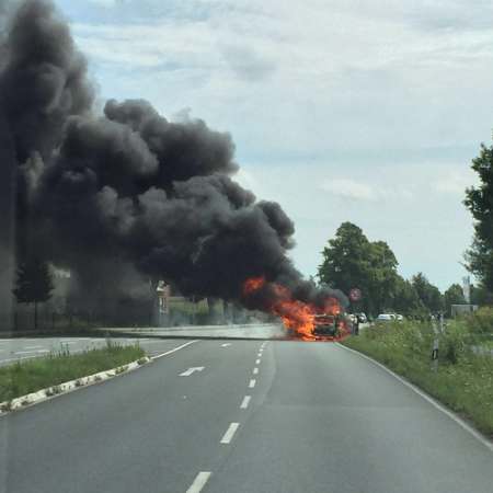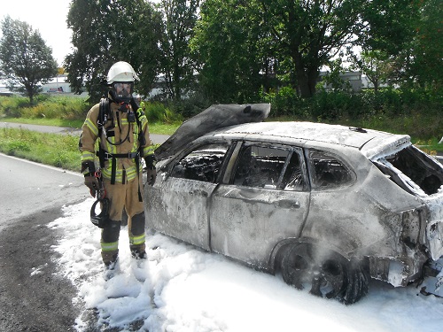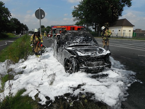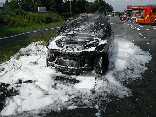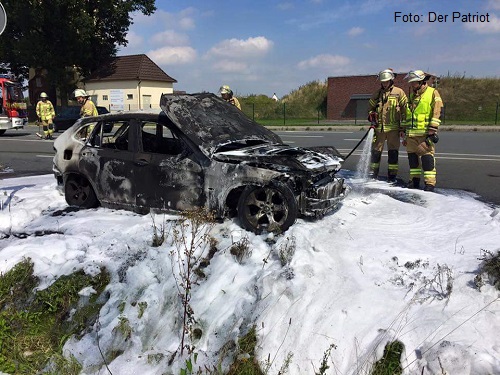 Bei Eintreffen der Feuerwehr brannte ein BMW X1 in voller Ausdehnung. Zur Brandbekämpfung wurden drei Wehrleute unter Atemschutz mit Wasser und Schaum eingesetzt.