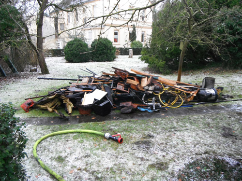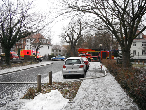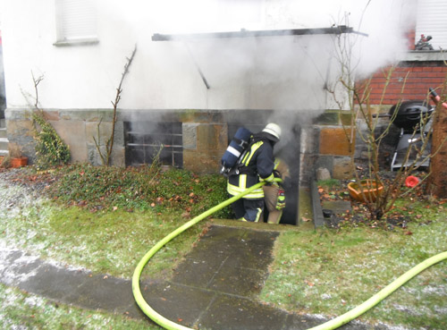 Bei Eintreffen der Feuerwehr stand ein Kellerraum in Vollbrand. Der Treppenraum war leicht verraucht. Ein Trupp unter Atemschutz wurde zur Brandbekämpfung im Keller eingesetzt. Die Wohnungen in dem Mehrfamilienhaus wurde von einem zweiten Trupp unter Atemschutz begangen. Personen haben sich nicht mehr in den Wohnungen aufgehalten. Nach der Brandbekämpfung wurde das Brandgut unter Atemschutz aus dem Keller geräumt und abgelöscht. Eingesetzt wurde auch der Hochleistungslüfter, sowie mehrere Trupps unter Atemschutz. Verletzt wurde niemand.