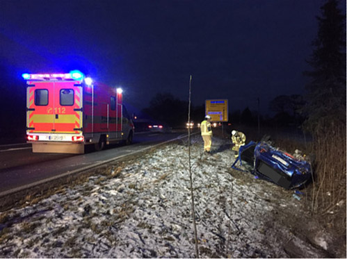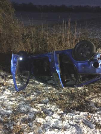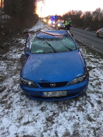 Ein Pkw ist von der Fahrbahn abgekommen, hat sich mehrfach übeschlagen und ist anschließend im Straßengraben auf dem Dach liegengeblieben. Der Fahrer konnte sich von alleine aus dem Fahrzeug befreien. Die Feuerwehr unterstützte den Rettungsdienst. Die Fahrbahn wurde gegen den fließenden Verkehr abgesichert und die Unfallstelle wurde ausgeleuchtet.