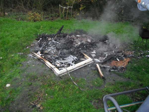 Matratzen und Kunststofffensterrahmen sind verbrannt worden. Da der Verursacher nicht in der Lage war das Feuer abzulöschen, musste die Feuerwehr mit dem Schnellangriff tätig werden.