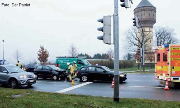 Absicherung einer Einsatzstelle für den Rettungsdienst. Anschließend sind ausgelaufene Betriebsstoffe mit Bindemittel abgestreut worden.