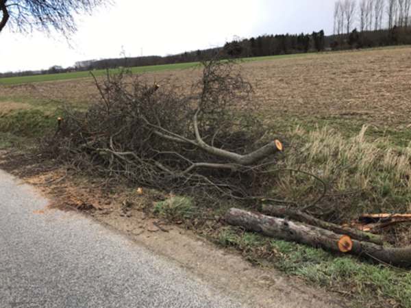 Ca. 5 m langer Baum, ca. 40 cm Durchmesser auf halber Höhe abgebrochen. Dadurch Straße versperrt. Baum wurde zerkleinert und die Fahrbahn gesäubert.