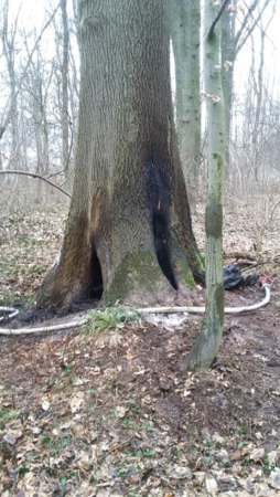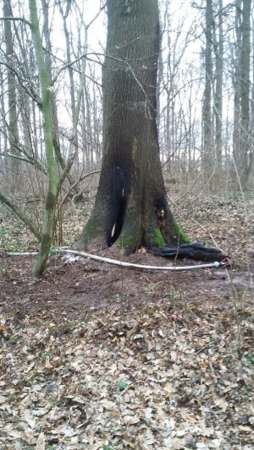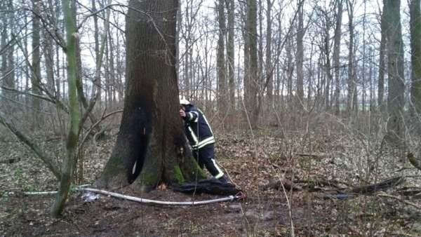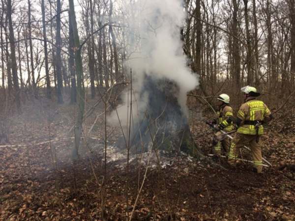 In einem Waldgebiet brannte ein hohler Baum. Durch den Kamineffekt konnte das Feuer nicht vollständig mit einem Kleinlöschgerät gelöscht werden. Zur Sicherstellung der Wasserversorgung wurden zwei Tanklöschfahrzeuge angefordert. Der Baum wurde von der Feuerwehr abgelöscht.