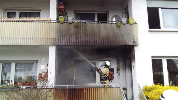 Aus ungeklärter Ursache brannten Einrichtungsgegenstände auf einem Balkon im Erdgeschoss. Zur Brandbekämpfung wurde ein Trupp unter Atemschutz mit einem C-Rohr eingesetzt. Bei Eintreffen der Feuerwehr waren zwei Wohnungen und der Treppenraum verraucht. Ein weiterer Trupp kontrollierte den Treppenraum und eine Wohnung.