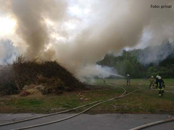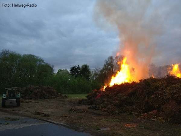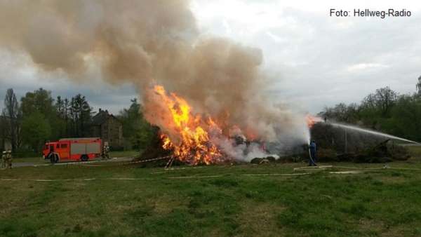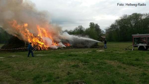 Das Osterfeuer wurde vorzeitig in Brand gesetzt. Zur Eindämmung des Feuers setzte die Feuerwehr ein B-Rohr und zwei C-Rohre ein. Mit Hilfe von ortsansässigen Landwirten wurde das Osterfeuer auseinander geschoben. Die Löschgruppe Eickelborn blieb vor Ort und ließ das Feuer kontrolliert abbrennen.