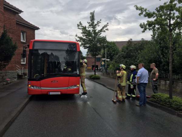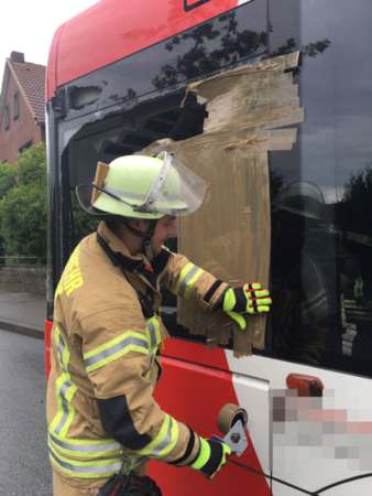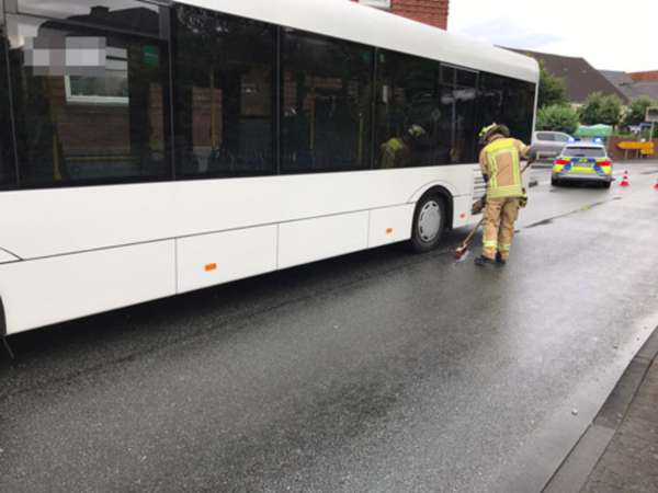 Verkehrsunfall zwischen einem Bus und einem LKW im Bereich Langeneicker Straße / Rüthener Straße. Durch die Kollision der Außenspiegel beider Fahrzeuge wurde an dem Bus die Seitenscheibe an der Fahrerseite zerstört. Die Glasspitter wurde von der Fahrbahn entfernt und die Seitenscheibe abgeklebt. Die Wachbereitschaft konnte die Fahrt zur Einsatzstelle abbrechen.