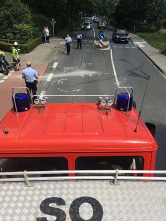Im Kreuzungsbereich Benninghauser Straße / Hammerschmidtbogen ist es zu einem Verkehrsunfall zwischen einem Pkw und einem Motorrad gekommen. Ausgelaufene Betriebsstoffe wurden von der Feuerwehr abgestreut und Warnschilder wurden aufgestellt.