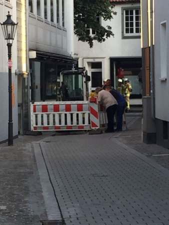 Aus einer Gasleitung in ca. 2 m Tiefe einer Baustelle drang Gas aus. Die Einsatzstelle wurde großräumig abgesperrt. Die Marktstraße und der Mühlenpfad wurden komplett gesperrt. Die Leckage wurde mit einer Dichtungsmuffe abgedichtet. Nachdem die angrenzenden Gebäude mit Gasmessgeräten kontrolliert worden sind, wurde die Einsatzstelle an die Stadtwerke übergeben.