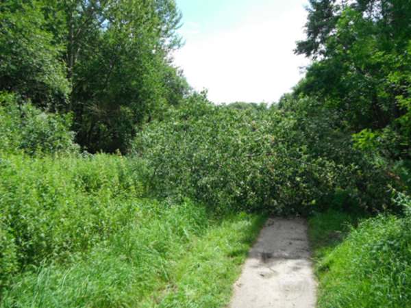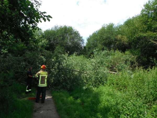 Eine ca. 12 m lange Pappel lag auf einem Gehweg. Die Krone wurde zurückgeschnitten.