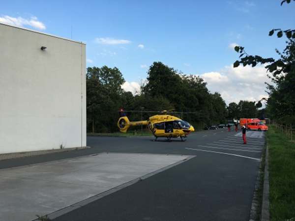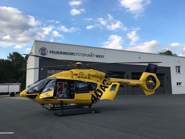 Auf dem Gelände des Feuerwehrstützpunktes West wurde von der Feuerwehr eine Landung eines Rettungshubschraubers abgesichert.