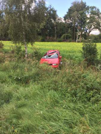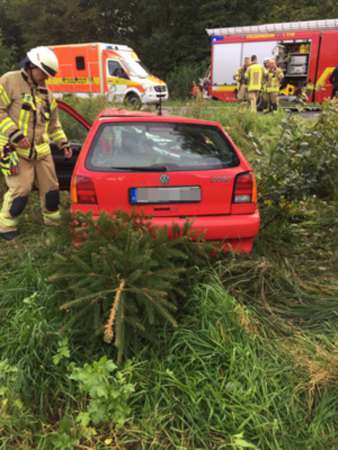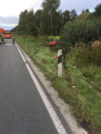 Aus ungeklärter Ursache ist ein PKW von der Fahrbahn abgekommen. Nach einem Überschlag ist der PKW im Graben zum Stehen gekommen. Die Feuerwehr hat eine Person aus dem PKW befreien müssen. Eine Person wurde schwer, die andere Person leicht verletzt. Beide Personen wurden ins Krankenhaus transportiert.