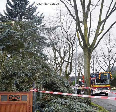 Eine ca. 12 m große Tanne war von einem Privatgrundstück teilweise auf den Gehweg gefallen. Die Einsatzstelle wurde abgesperrt und das Ordnungsamt wurde informiert.