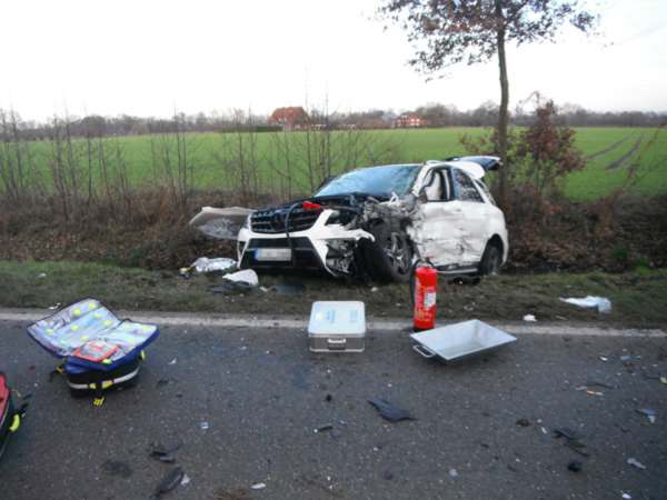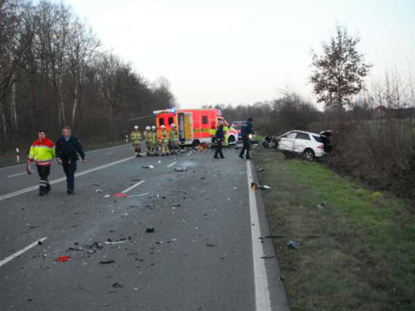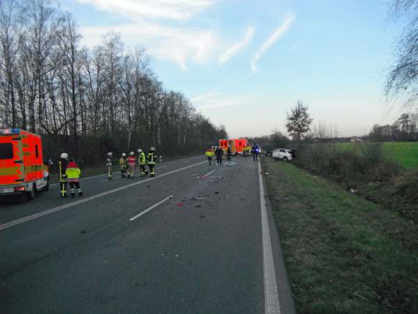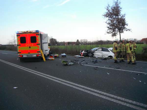 Schwerer Verkehrsunfall auf der B 55 zwischen den Kreuzungen Ostlandstraße und Quellenstraße in Bad Waldliesborn. Bei Eintreffen der Einsatzkräfte war noch ein Fahrer in seinem Fahrzeug eingeklemmt. Der Fahrer wurde von der Feuerwehr mit hydraulischen Rettungsgeräten (Sofortrettung) befreit. Allerdings verstarb er noch an der Unfallstelle. Der zweite Fahrer wurde schwerverletzt mit einem angeforderten Rettungshubschrauber in eine Unfallklinik geflogen.