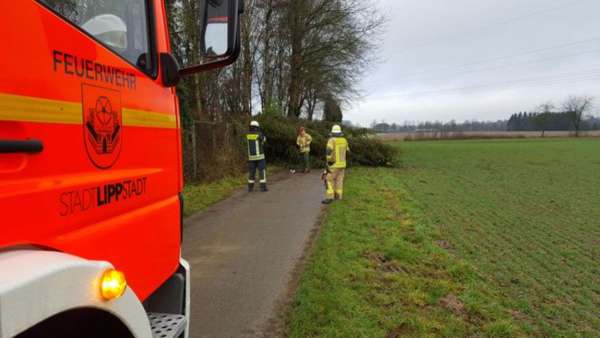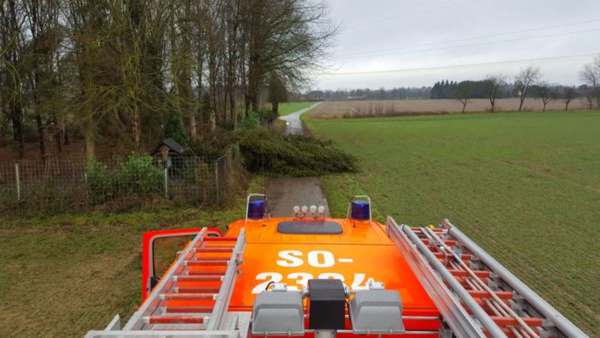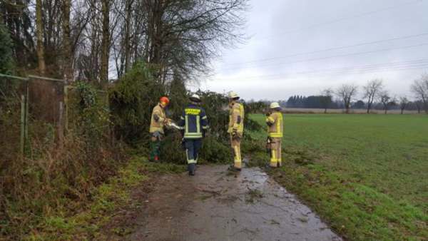 Eine umgestürzte Tanne wurde von der Feuerwehr mittels Motorsäge zerkleinert. Anschließend wurde die Fahrbahn geräumt.
