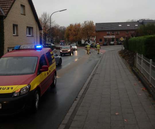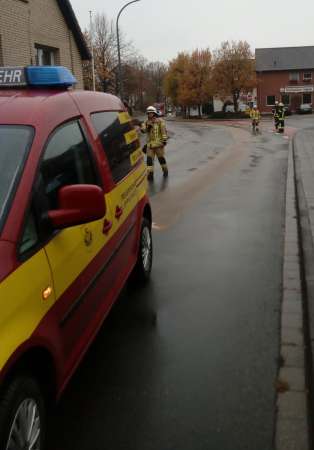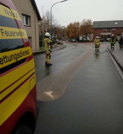 Straßenverunreinigung nach Erkundung von der Thingstraße in Dedinghausen, über die Straße Unterdorf in Rixbeck bis zum Roßfeld (Auffahrt B 55). Die Einsatzstelle wurde von der Feuerwehr mit Ölbindemittel abgestreut und anschließend wurde das verbrauchte Ölbindemittel wieder aufgenommen. Durch den städt. Baubetriebshof sind auf Anweisung der Ordnungsbehörde Warnschilder "Achtung! Ölspur" aufgestellt worden.
