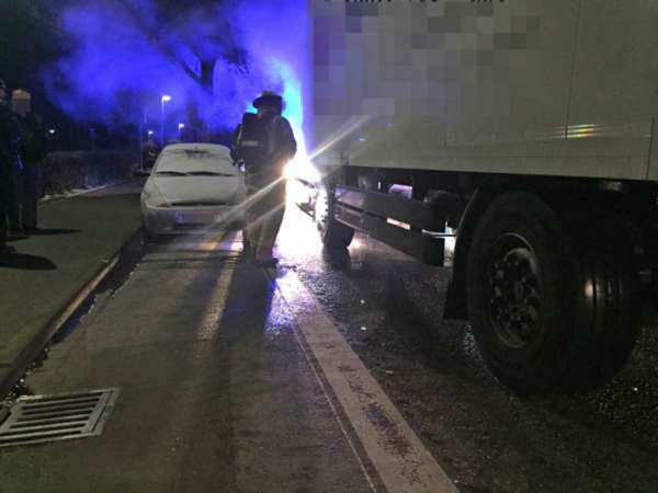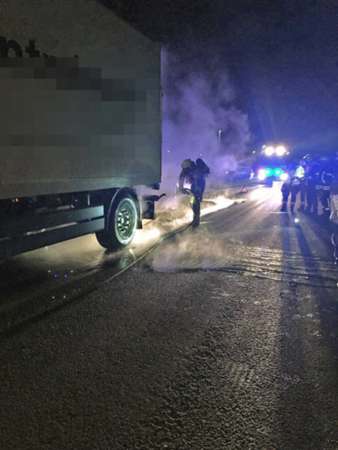 Entstehungsbrand an der Hinterachse eines Lkw-Anhängers. Der Kleinbrand wurde mittels Schnellangriff abgelöscht und gekühlt. Anschließend wurde der Bereich mit der Wärmebildkamera kontrolliert. Der Baubetriebshof wurde verständigt, um abgegebenes Löschwasser, welches aufgrund der Temperaturen gefriert, abzustreuen.