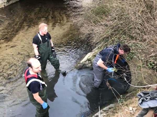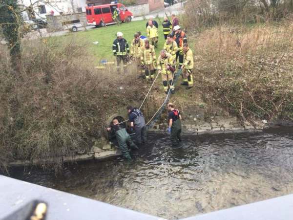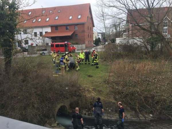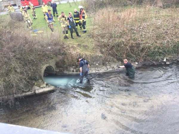 In der südlichen Umflut wurde eine weiße / milchige Verunreinigung festgestellt. Die Kontrolle der umliegenden Kanalschächte ergab keinen Hinweis auf die Ursache. Eine Wasserprobe wurde entnommen. Der Kanalzulauf wurde mit einem Dichtkissen verschlossenen. Das verunreinigte Wasser wurde abgesaugt und anschließend entsorgt.