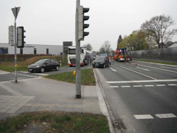 Verkehrsunfall zwischen einem Lkw und einem Pkw im Kreuzungsbereich B 55 / Bökenförder Straße. Die Feuerwehr wurde aufgrund von auslaufenden Betriebsstoffen, Eigensicherungsmaßnahmen sowie zur Unterstützung des Rettungsdienstes alarmiert. Die Einsatzstelle wurde abgesichert. Der Rettungsdienst wurde bei der patientenorientieren Rettung aus dem Pkw unterstützt. Des Weiteren wurde die Fahrzeugbatterie abgeklemmt und ausgelaufene Betriebsstoffe wurden abgestreut. Der Brandschutz wurde mit zwei unabhängigen Löschmitteln sichergestellt. Abschließend wurde die Polizei bei der Unfallaufnahme mit Hilfe der Drehleiter unterstützt.