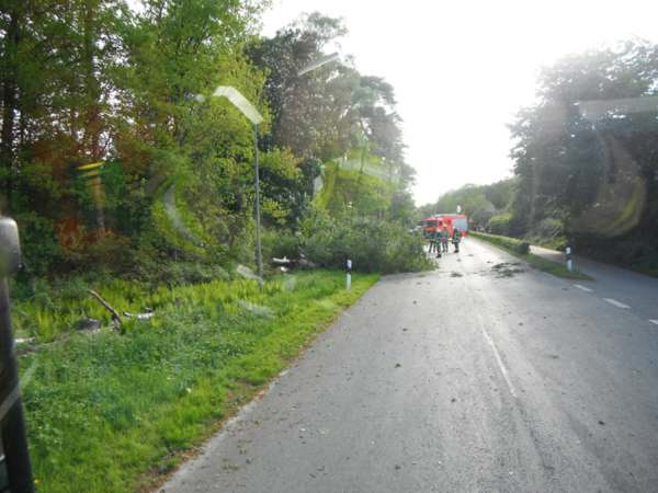 Ein auf die Straße gestürzter Baum wurde von der Löschgruppe Benninghausen in den angrenzenden Wald gezogen.