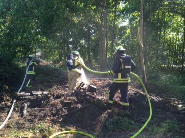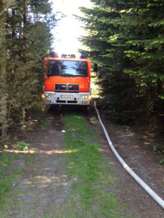 Auf einer Freifläche in einem Waldgebiet brannten ca. 20 m² Grünabfälle in voller Ausdehnung. Zur Brandbekämpfung wurden zwei Trupps (einer mit Atemschutz) mit zwei C-Rohren eingesetzt. Die Wasservorsorgung wurde über die beiden Fahrzeugtanks der Fahrzeuge aus Lipperode und über eine ca. 200 m lange B-Leitung zu einem Hydranten sichergestellt.