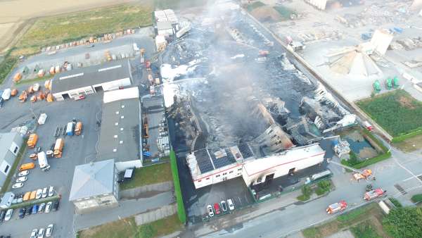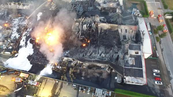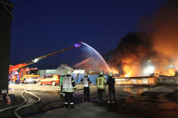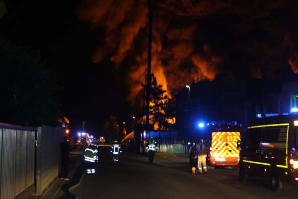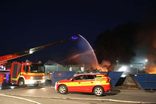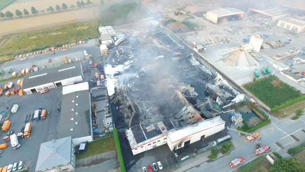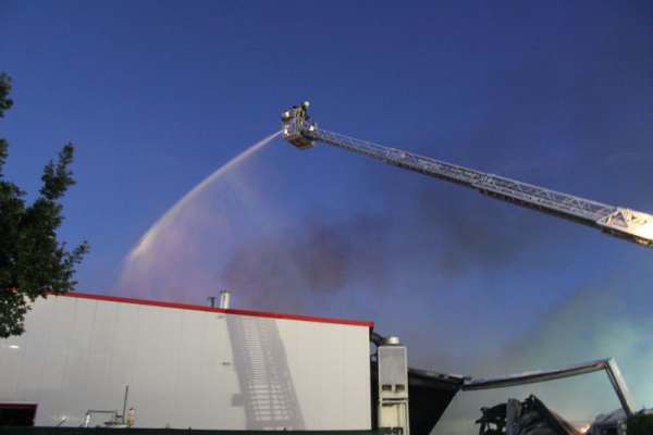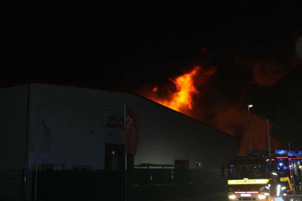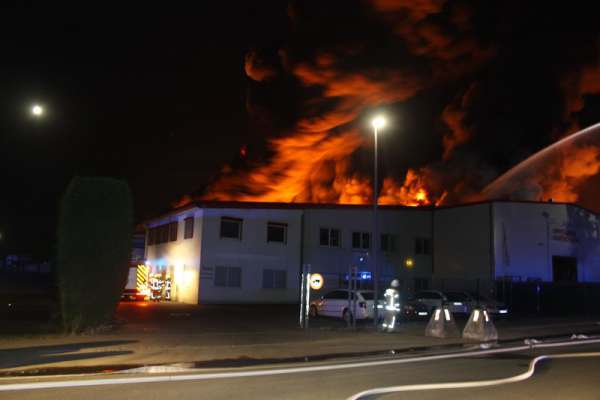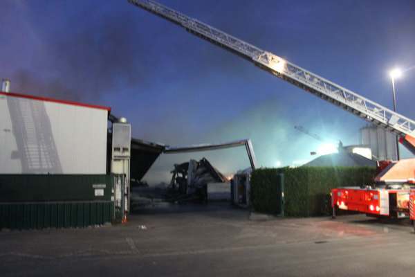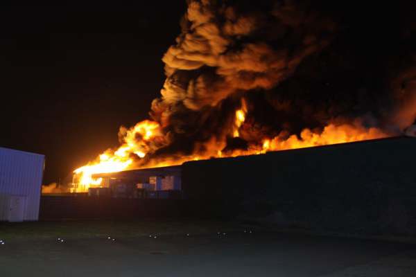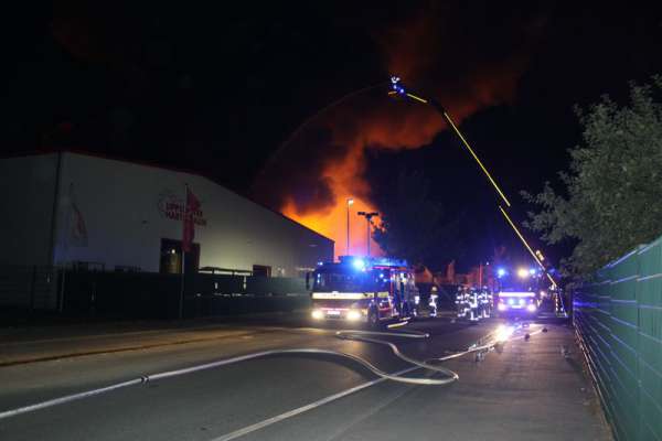 Um 23.44 Uhr wurde die hauptamtliche Wachbereitschaft der Feuerwehr Lippstadt zu einer automatischen Feuermeldung zu einem Hartschaumverarbeiteten Betrieb an der Bertramstr. alarmiert. Während der Anfahrt war eine starke Rauchentwicklung sowie Flammenschein über dem Gewerbegebiet „Am Wasserturm“ zu sehen. Bei Eintreffen der Feuerwehr brannte der Betrieb in voller Ausdehnung. Umgehend wurden weitere Löschzüge zur Einsatzstelle alarmiert. Kurz nach Eintreffen der ersten Kräfte kam es zum Einsturz einer Halle im Bereich der Produktion.