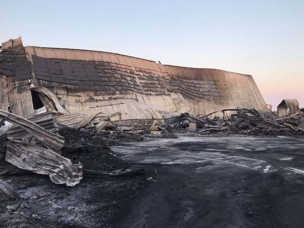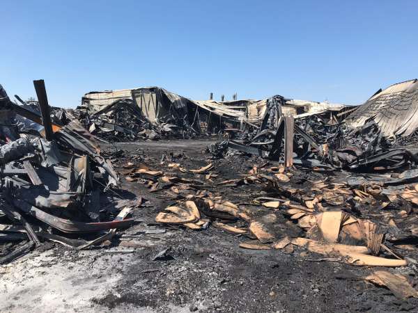 Nachlöscharbeiten bei dem Großbrand. Einige kleiner Glutnester wurden von einem Trupp, ausgerüstet mit Filter) mit einem C-Rohr abgelöscht und mit der Wärmebildkamera kontrolliert.