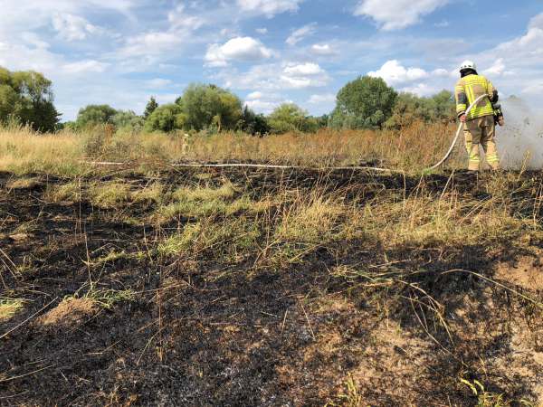 Ein Flächenbrand zwischen dem Nördlichen Schützenplatz und der Lippe wurde von der Feuerwehr mit zwei C-Rohren abgelöscht.