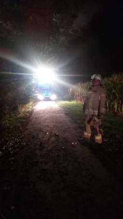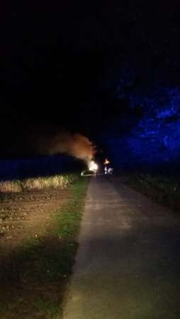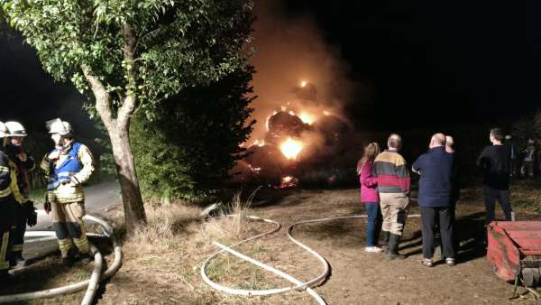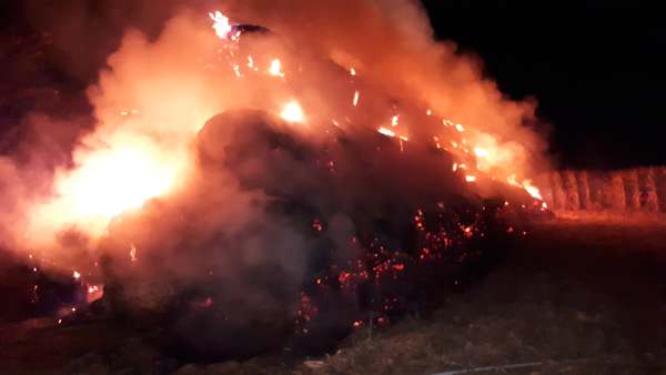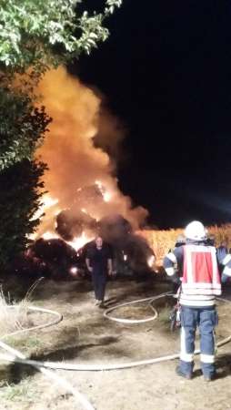 Bei Eintreffen der Feuerwehr hatte sich das Feuer bereits so weit ausgebreitet, dass ein Löschen schon nicht mehr möglich war und vorrangig ein Übergreifen der Flammen auf ein unmittelbar angrenzendes Maisfeld verhindert wurde. Unterstützend wurde ein Streifen des Maisfeldes durch den anwesenden Landwirt abgemäht und gemulcht. Letztlich ließ die Feuerwehr das Stroh kontrolliert abbrennen.