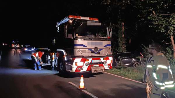 Aus ungeklärter Ursache ist ein Fahrzeug von der Fahrbahn abgekommen und im Straßengraben gelandet. Die Einsatzstelle wurde abgesichert, ausgeleuchtet und die Fahrzeugbatterie wurde abgeklemmt.