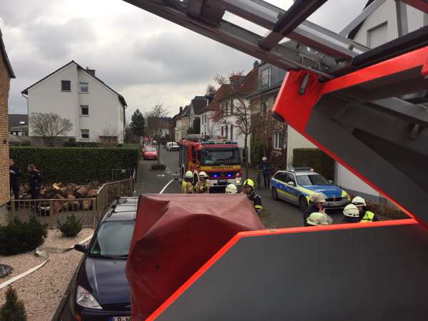 Bei Eintreffen war ein leichter Brandgeruch wahrnehmbar. Von außen konnte jedoch nichts festgestellt werden. Im Kaminzug hatte es gebrannt. Der Spitzboden war leicht verraucht. Die Fenster wurden geöffnet. Der Schornsteinfegermeister hat den Kaminzug gekehrt. Zur Sicherung stand ein Trupp unter Atemschutz auf dem Spitzboden bereit. Ein weiterer Trupp unter Atemschutz entfernte im Keller die zum Teil glühenden Kehrreste und verbrachte diese ins Freie. Durch die Arbeiten im Keller wurde der Keller verraucht. Die Räumlichkeiten im Keller wurden mit Hilfe eines Hochleistungslüfters gelüftet.