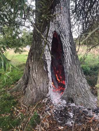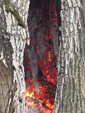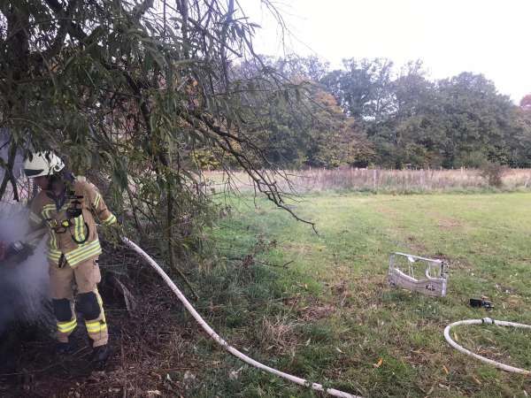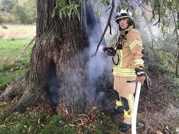 Ein hohler Baum brannte im Stamm im Bereich der Lippewiesen. Zur Brandbekämpfung wurde ein C-Rohr eingesetzt.