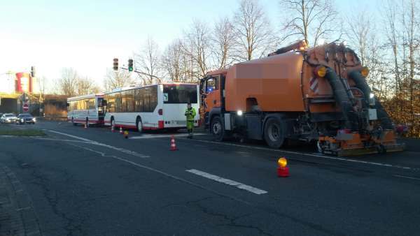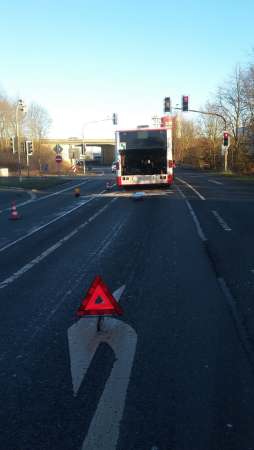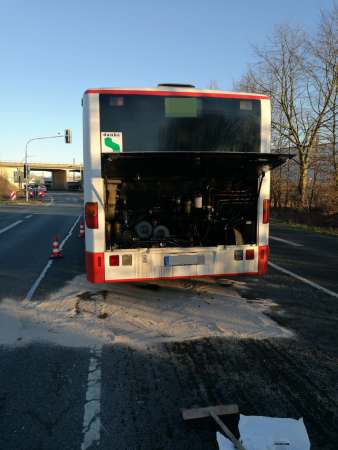 Motorplatzer bei einem Bus. Dadurch kam es zu einer ca. 300 m langen und ca. 3 m breiten Ölspur. Teilweise wurde die Ölspur mit Ölbindemittel abgestreut. Anschließend erfolgte eine Reinigung durch eine Entsorgungsunternehmen. Verkehrsschilder "Achtung! Ölspur" sind aufgestellt worden.