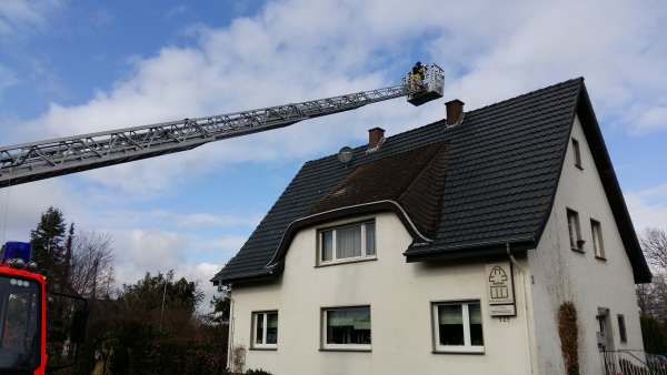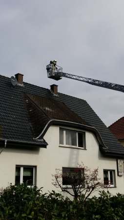 Kamin in Vollbrand. Ein Trupp unter Atemschutz wurde eingesetzt. Der Kamin wurde über den Korb der Drehleiter gefegt. Die Einsatzstelle wurde an den Schornsteinfeger übergeben.