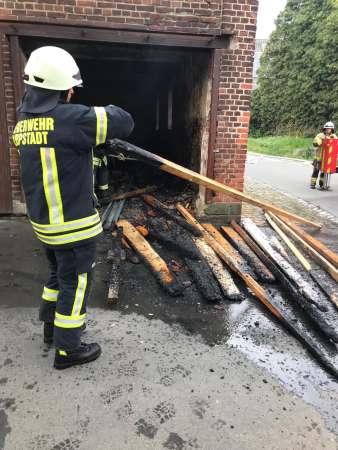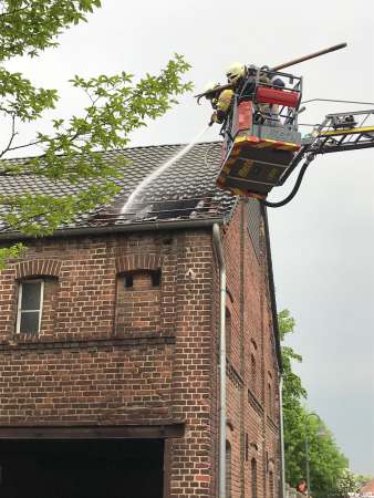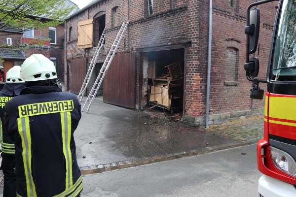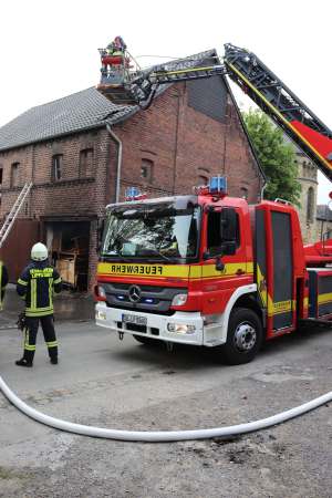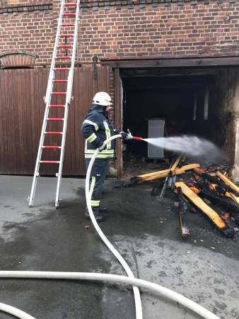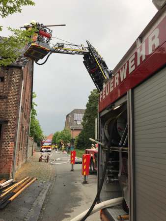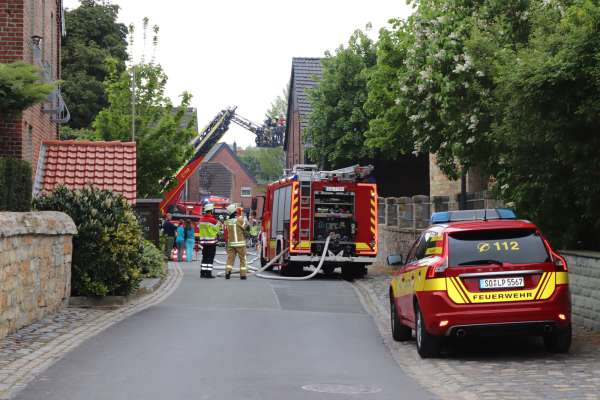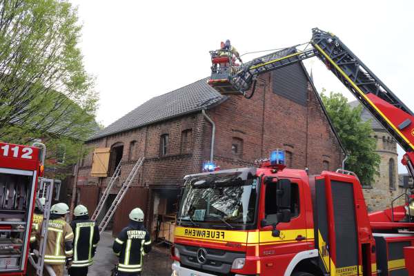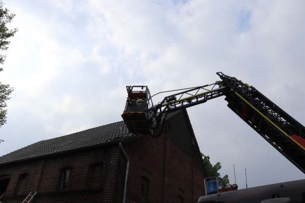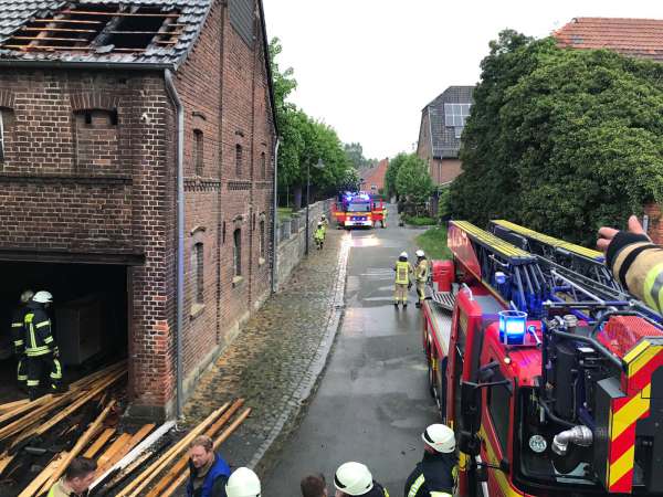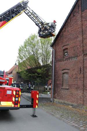 Aus ungeklärter Ursache brannte es in einer Scheune. Das Feuer hatte bereits auf das Obergeschoss und Teile des Dachstuhl übergegriffen. Zur Brandbekämpfung sind drei C-Rohre eingesetzt worden. Über den Korb der Drehleiter wurden Teile der Dachhaut entfernt und Glutnester abgelöscht. Das Brandgut wurde im Erdgeschoss aus der Scheune entfernt und abgelöscht.