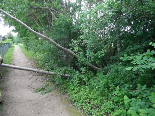 Zwei ca. 10 cm dicke Bäume lagen auf einem Fußweg. Durch die Löschgruppe Lipperbruch wurden die beiden Bäume entfernt.