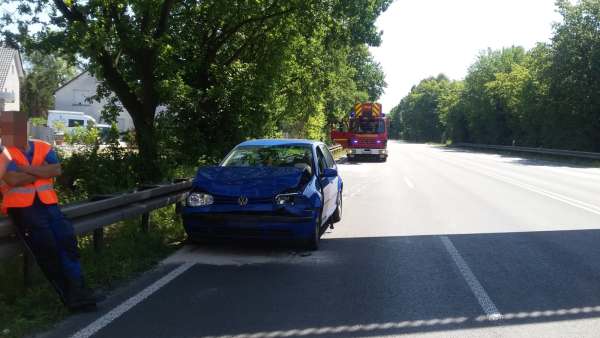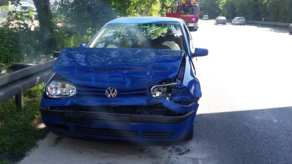 Auffahrunfall von einem Pkw auf einen Lkw. Im Pkw wurde dadurch eine Person leicht verletzt. Die Einsatzstelle wurde gegen den fließenden Verkehr abgesichert. Die Fahrzeugbatterie des Pkw wurde abgeklemmt.