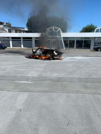 Bei Eintreffen der Feuerwehr brannte ein Pkw im Eingangsbereich einer Lagerhalle. Dieser wurde vom Besitzer mittels Gabelstapler auf den Hof verbracht. Der Pkw wurde von der Feuerwehr mit dem Schnellangriff abgelöscht. Die verrauchte Lagerhalle wurde über den Rauch-/Wärmeabzugsanlage (RWA) und über einen Hochleistungslüfter rauchfrei gemacht.