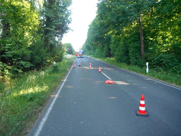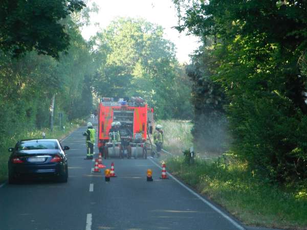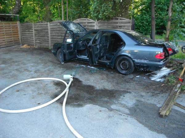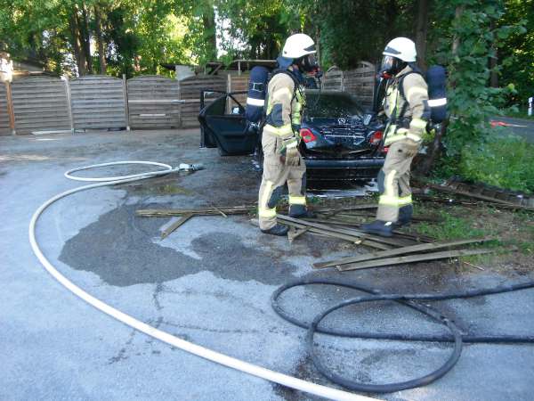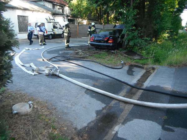 Bei Eintreffen der Feuerwehr brannte ein Baum / Böschung und der Kofferraum von einem Pkw. Zur Brandbekämpfung wurde ein Trupp unter Atemschutz mit dem Schnellangriff eingesetzt. Der Pkw wurde gewaltsam geöffnet und mit der Schaumpistole abgelöscht.