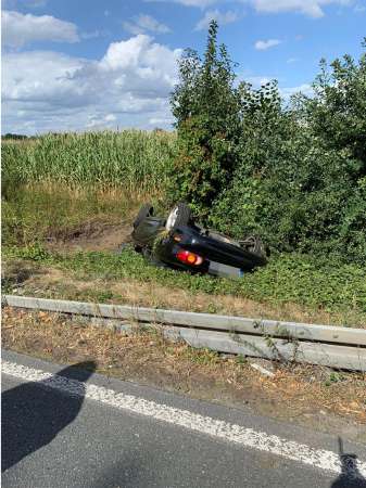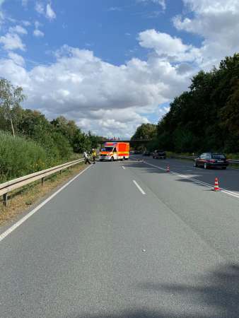 Verkehrsunfall zwischen zwei Fahrzeugen zwischen den Abfahrten Ostlandstraße und Quellenstraße. Bei Eintreffen der Feuerwehr befand sich ein Pkw im Straßengraben und ein Pkw auf dem Dach liegend. Drei Fahrzeuginsassen wurden bei dem Verkehrsunfall schwer verletzt. Die Einsatzstelle wurde abgesichert und die Fahrzeugbatterien wurden abgeklemmt. Betriebsstoffe waren nicht ausgelaufen.