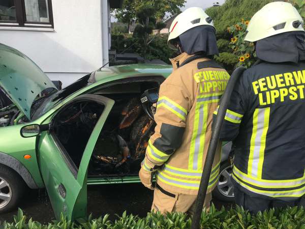 Der brennende Innenraum eines Pkw wurde bereits durch den Eigentümer vor Eintreffen der Feuerwehr abgelöscht. Eine Kontrolle erfolgte von der Feuerwehr mittels Wärmebildkamera. Einige Glutnester wurden von der Feuerwehr mit dem Schnellangriff abgelöscht.