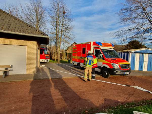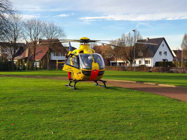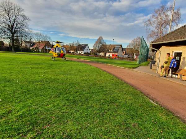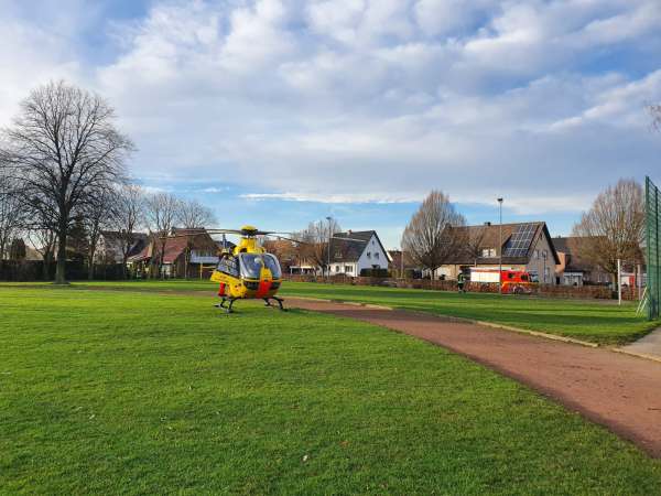 Absicherung des Sportplatzes für die Landung eines Rettungshubschraubers. Der Brandschutz wurde von der Feuerwehr sichergestellt.