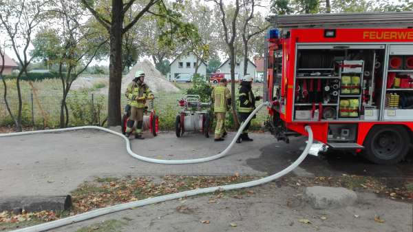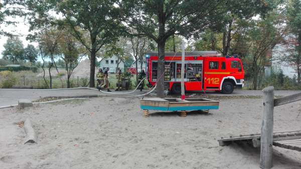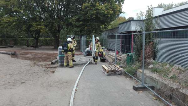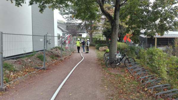 Bei Eintreffen der Feuerwehr war eine starke Rauchentwicklung aus der Turnhalle erkennbar. Im Inneren der Turnhalle war es zu einem Brand auf einer Fläche von 3 x 6 m gekommen. Zur Brandbekämpfung wurde ein Innenangriff vorgenommen. Ein weiterer Trupp unter Atemschutz wurde zur Öffnung der Außenfassade eingesetzt. Die Drehleiter wurde für einen möglichen Monitoreinsatz (Wenderohr) in Stellung gebracht.