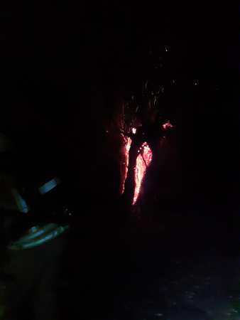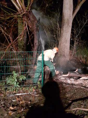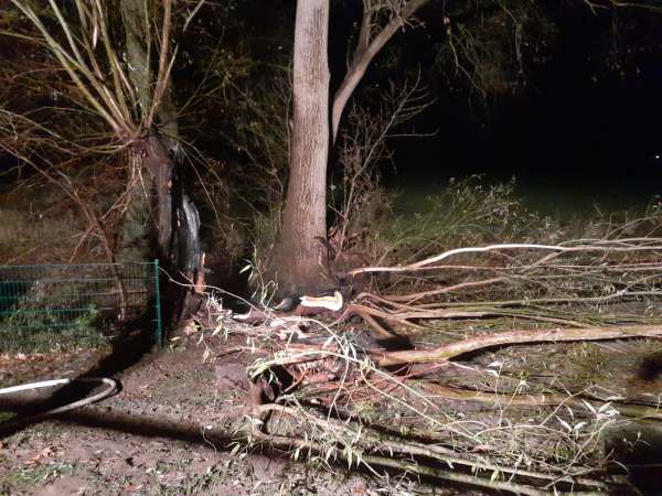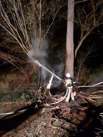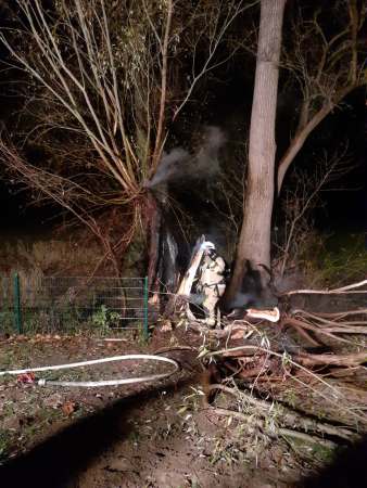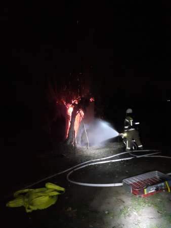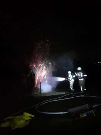 Aus ungeklärter Ursache brannte ein hohler Baum. Zur Brandbekämpfung wurde ein Trupp unter Atemschutz mit einem C-Rohr eingesetzt. Um an Glutnester besser zu gelangen, wurde der Stumpf mittels Motorkettensäge seitlich geöffnet. Die Glutnester wurden abgelöscht.