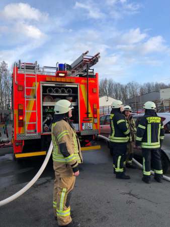 In einer Kfz-Werkstatt brannten mehrere Gegenstände. Der Brand war bereits auf die Hallendecke und die Außenfassade übergegangen. Zur Brandbekämpfung sind zwei Trupps unter Atemschutz eingesetzt worden.