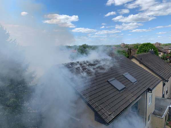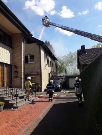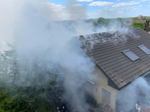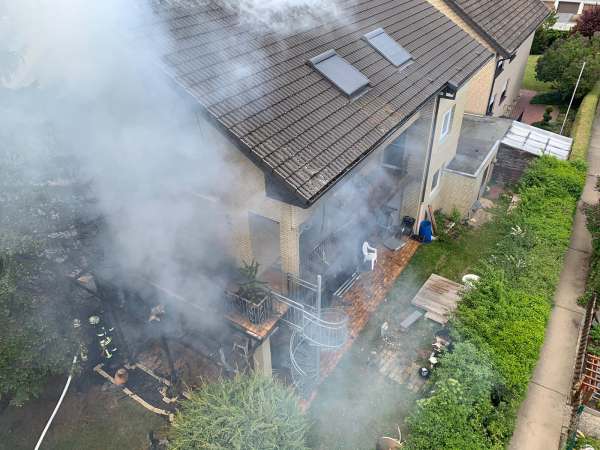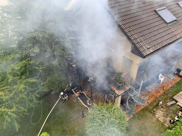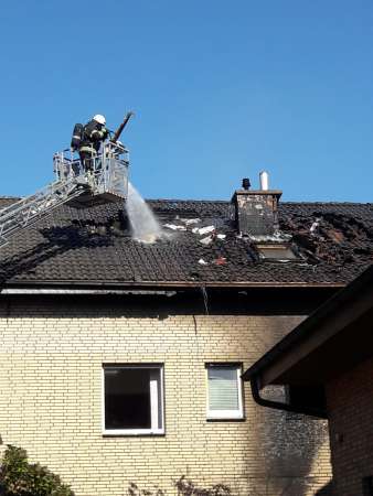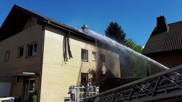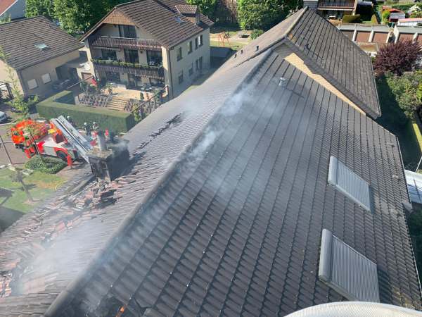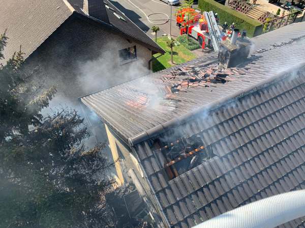 Über die Wenderohre von zwei Drehleitern und mehrere Atemschutz-Trupps im Innen- und Außenangriff wurden die Flammen bekämpft. Auch das Dach musste geöffnet werden.Parallel kühlten die Einsatzkräfte ein Nachbargebäude, um zu verhindern, dass auch dieses in Flammen aufging. Die sogenannte Riegelstellung hatte Erfolg. Wie nötig sie war, wurde an einer Scheibe sichtbar: Durch die enorme Wärmestrahlung war sie bereits geplatzt.