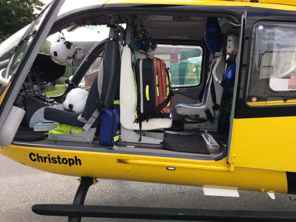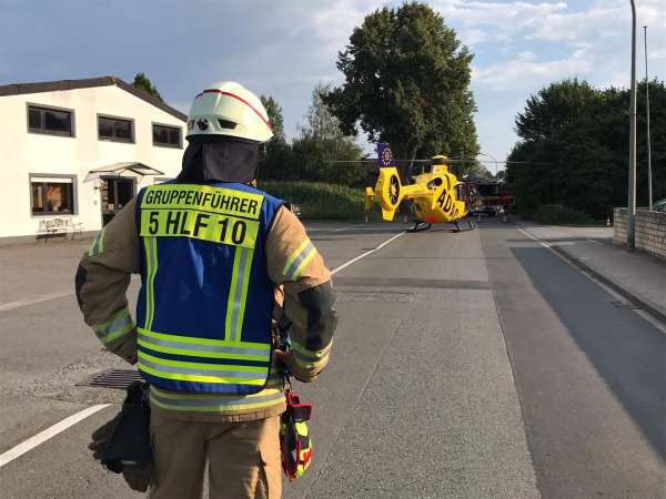 Absicherung bei der Landung eines Rettungshubschraubers. Die Feuerwehr unterstützte beim Transport des Patienten zum Rettungshubschrauber.