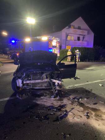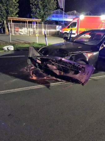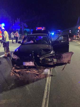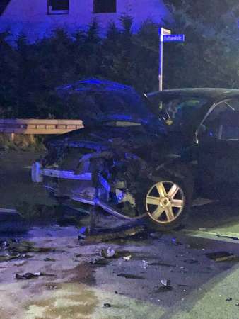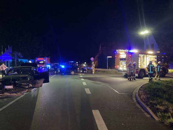 Am Dienstag, um 21:40 Uhr, kam es an der Einmündung des Goldammerwegs auf die Ostlandstraße zu einem schweren Verkehrsunfall. Ein 41-jähriger Mann aus Rumänien war mit seinem Renault-Megane auf dem Goldammerweg unterwegs. An der Einmündung bog er in einem großen Bogen nach rechts ab. Dabei kam er auf die Gegenfahrbahn der Ostlandstraße und kollidierte hier mit einem in Richtung B 55 fahrenden 5er BMW.