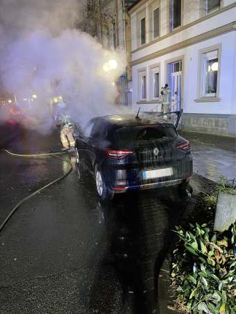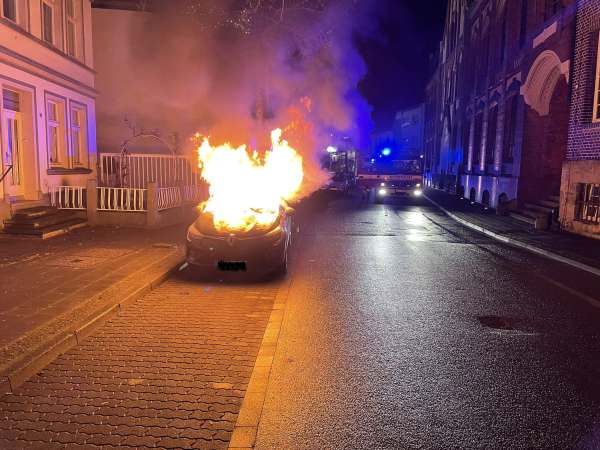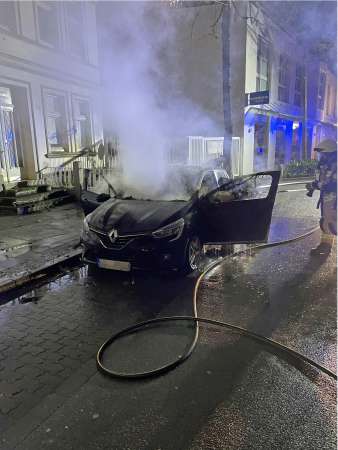Bei Eintreffen der Feuerwehr brannte der PKW bereits in voller Ausdehnung. Zur Brandbekämpfung wurde ein Trupp unter Atemschutz mit einem C-Rohr eingesetzt. Ein weiterer Trupp wurde mit einem C-Rohr zur Sicherung / Schutz eines Wohngebäudes (Riegelstellung) eingesetzt.