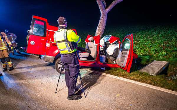 Der Fahrer wurde durch den Verkehrsunfall schwer verletzt. Ein sofort alarmierter Rettungshubschrauber konnte den Flug zur Unfallstelle abbrechen.